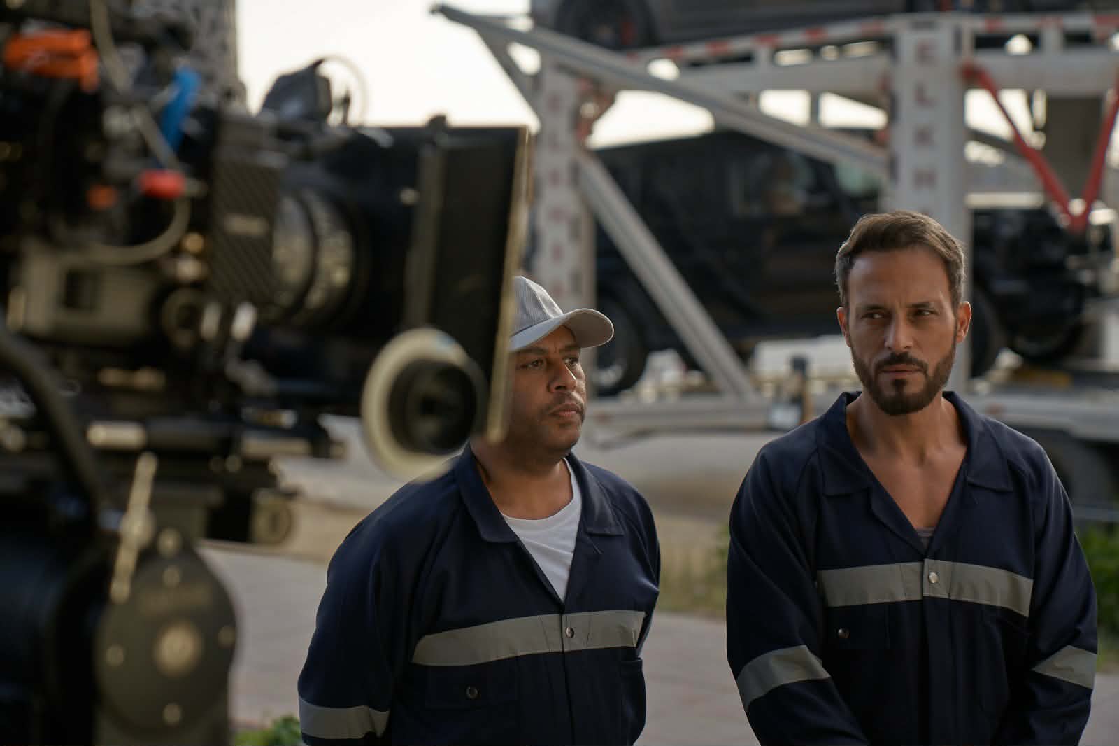 يوسف الشريف ومحمد جمعة من كواليس مسلسل فن الحرب – الصورة من المركز الإعلامي للشركة المنتجة