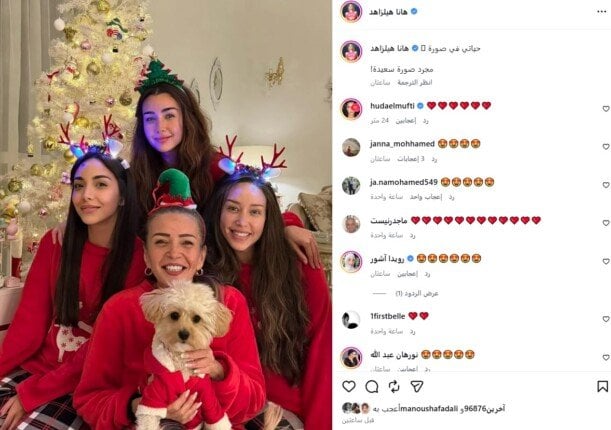 شاركت هنا الزاهد، عبر حسابها على إنستجرام، صور احتفالها برأس السنة مع والدتها وشقيقتها في منزلها بجوار شجرة الكريسماس، وعلقت قائلة: “حياتي في صورة، مجرد صورة سعيدة”