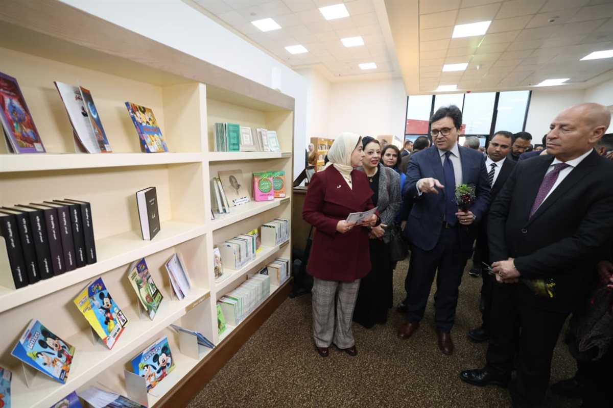 تفقّد وزير الثقافة ومحافظ القاهرة المكتبة التي صُممت لتكون نموذجًا عصريًا، حيث اطلعا على قاعاتها وخدماتها، والتي تمتد على مساحة 620 مترًا مربعًا، وتضم حوالي 11 ألف كتاب من إصدارات وزارة الثقافة في مجالات متنوعة، بالإضافة إلى قاعات متخصصة تشمل صالون نون السحار الثقافي وقاعة تدريب ومعمل كمبيوتر.