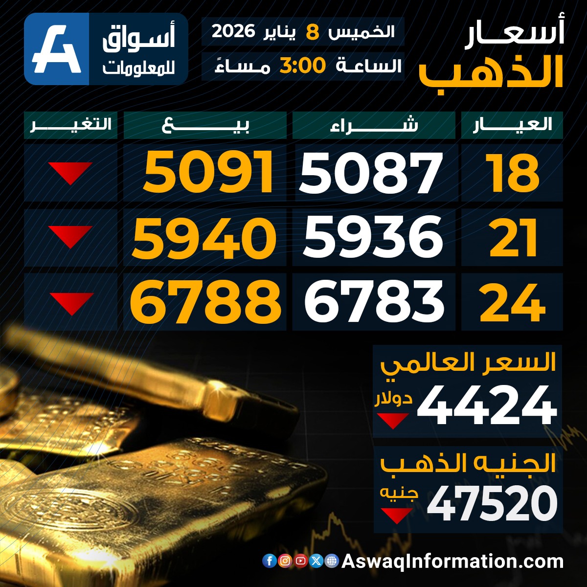 شهدت أسعار الذهب في مصر اليوم الخميس 8 يناير 2026 تراجعًا ملحوظًا في السوق المحلي، حيث يعتبر الذهب من السلع الهامة التي تتأثر بالتغيرات العالمية وحالة العرض والطلب، بالإضافة إلى سعر الدولار في البنوك، مما يؤدي إلى عدم استقرار الأسعار في هذه الفترة.