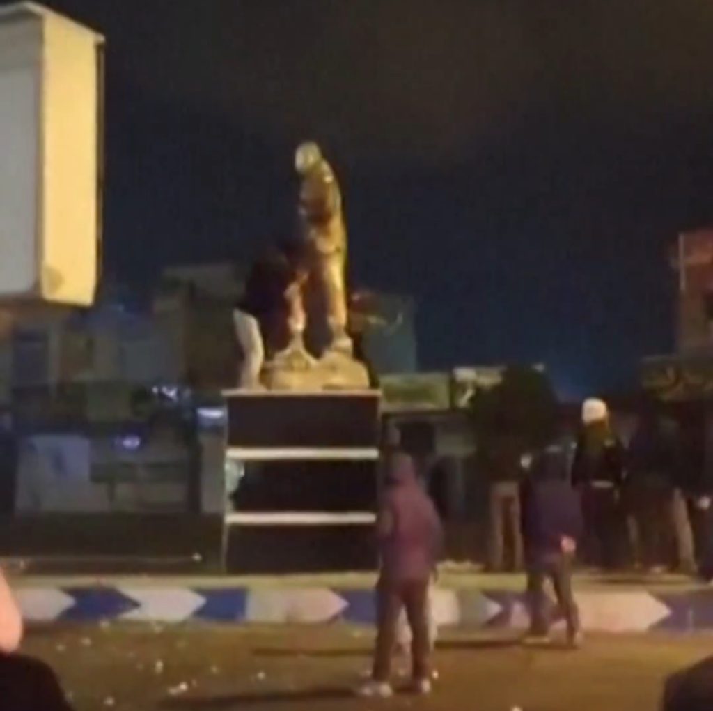 لحظة سقوط تمثال قاسم سليماني