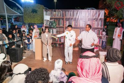 عرض المسرح المتحرك مسرحية “سيف ودلّة وطين” بأسلوب تفاعلي، حيث تناولت رمزية الأدوات التراثية في تشكيل الهوية الوطنية، وشارك الجمهور في أسئلة ثقافية وتاريخية لتعزيز تفاعلهم مع العرض، بينما احتضنت المسارح الثابتة الثلاثة مجموعة من العروض، مثل مسرحية “الكتاب المسروق” التي دارت أحداثها داخل مكتبة سحرية، حيث تم البحث عن كتاب ثمين بمشاركة الجمهور، وانتهت برسالة إنسانية تدعو لحب القراءة وحماية المعرفة.