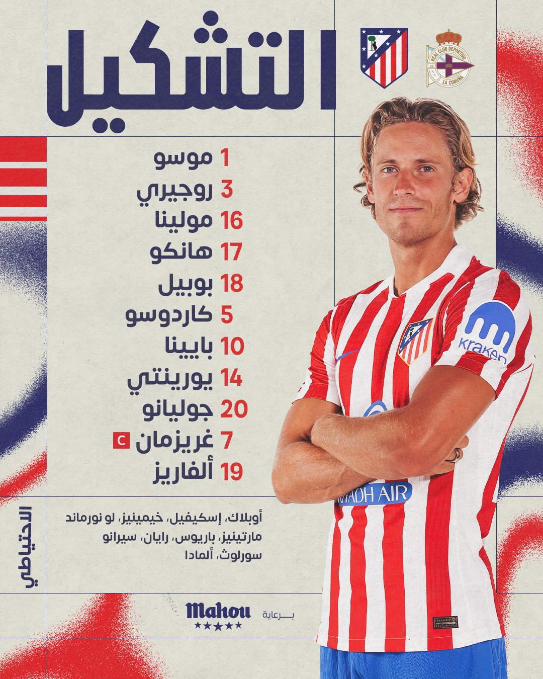تشكيل أتلتيكو مدريد أمام ديبورتيفو لاكورونيا