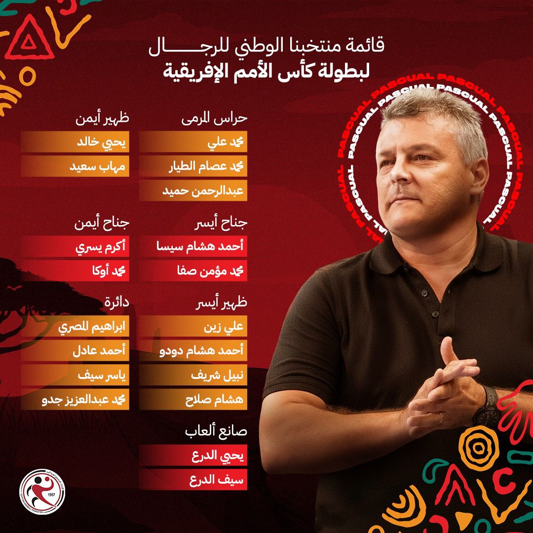 المدير الفني لمنتخب مصر الأول لكرة اليد للرجال، الإسباني باسكوال، أعلن القائمة الرسمية للمشاركة في بطولة كأس الأمم الأفريقية.
