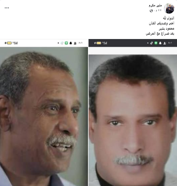 كتب مكرم على صفحته في “فيس بوك”: “الدوام لله أخي وصديقي الفنان محمود بشير بعد صراع مع المرض”