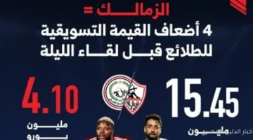 الزمالك يتفوق بأربع مرات على القيمة التسويقية للطلائع قبل المواجهة المرتقبة في الدوري