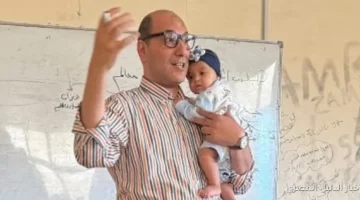 عميد كلية التجارة في كفر الشيخ يحمل رضيعة طالبة دراسات عليا خلال محاضرة تعليمية